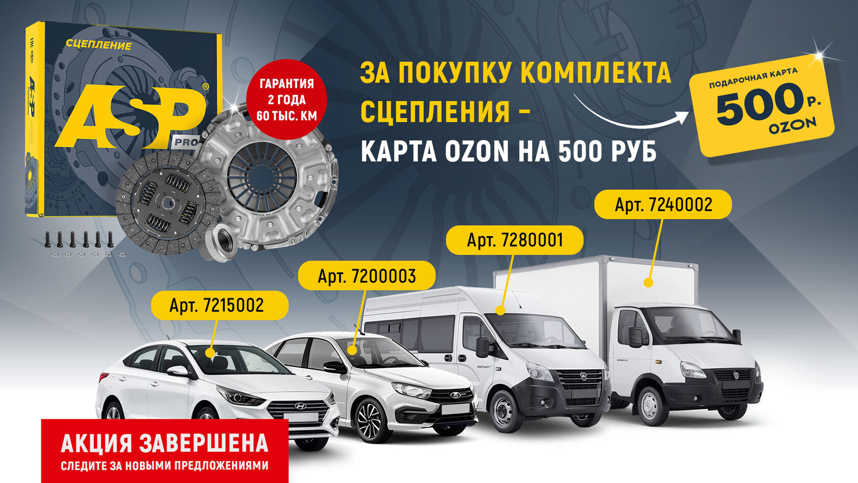 Акция! Только в сентябре 2025г! За покупку комплекта сцепления ASPpro - карта OZON в подарок